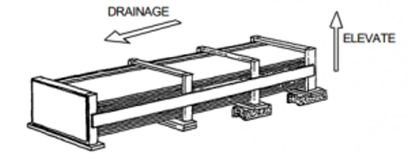 When I talk about storing your building, I’m really trying to make sure you realize that we need to avoid damage to the components, personal injury and precipitation and moisture. If water is allowed to remain for an extended period of time on primed parts like purlins or girts, the paint might gradually soften and the pigment might fade. So we have a simple solution. All bundles of parts should be stored at an angle to allow trapped water to drain. This will allow any water to run off the members. Don’t forget to clean up any puddles that collect on rafters and columns as well.